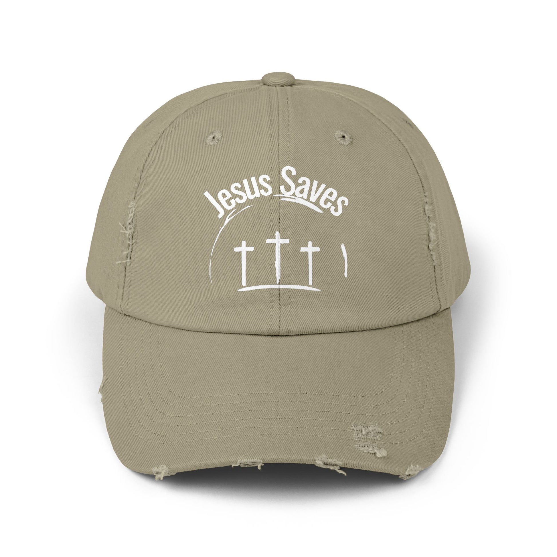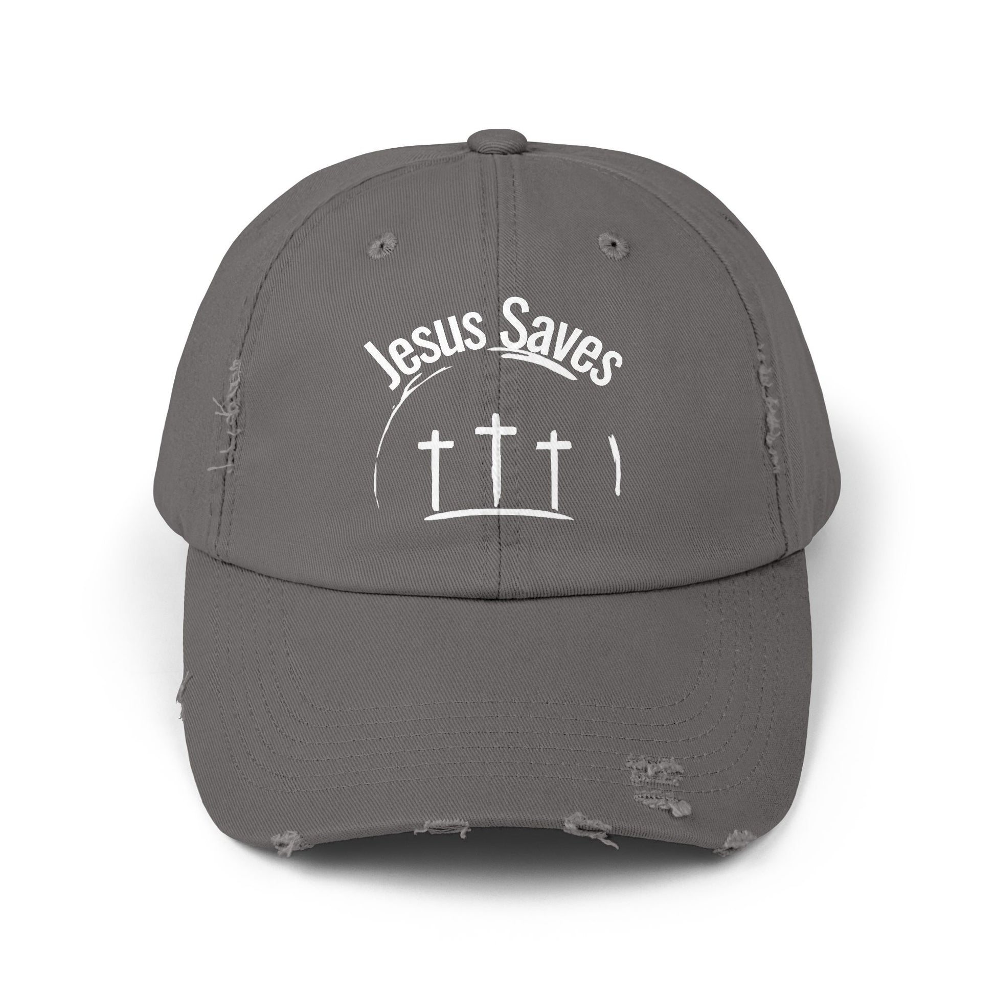 This Jesus Saves distressed cap gives off a vintage vibe with its unique distressed look. Perfect for everyday wear, this comfortable cap is relevant for Christians looking for a stylish accessory to express their faith during casual outings or events.