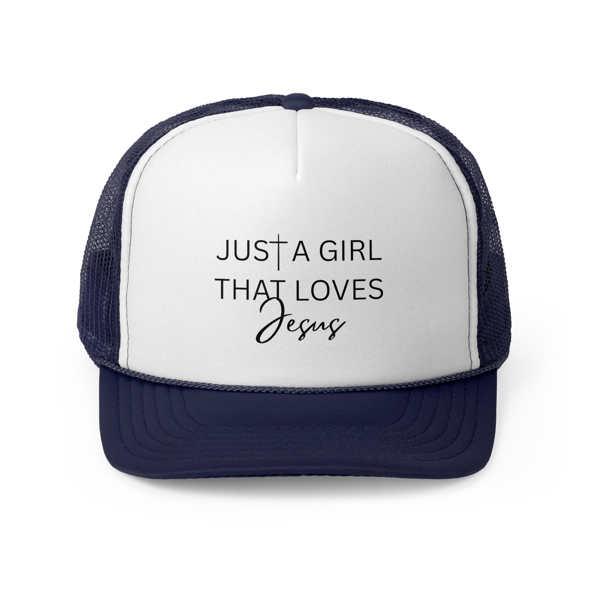 This Just a girl that loves Jesus Trucker Cap is perfect for those who want to show their love for Jesus in a stylish and casual way. With its vibrant colors and adjustable strap closure, this cap is comfortable and trendy. It is relevant to Christians who want to express their faith in a fun and fashionable way. Perfect for everyday wear, church gatherings, Christian events, and holidays like Easter and Christmas.