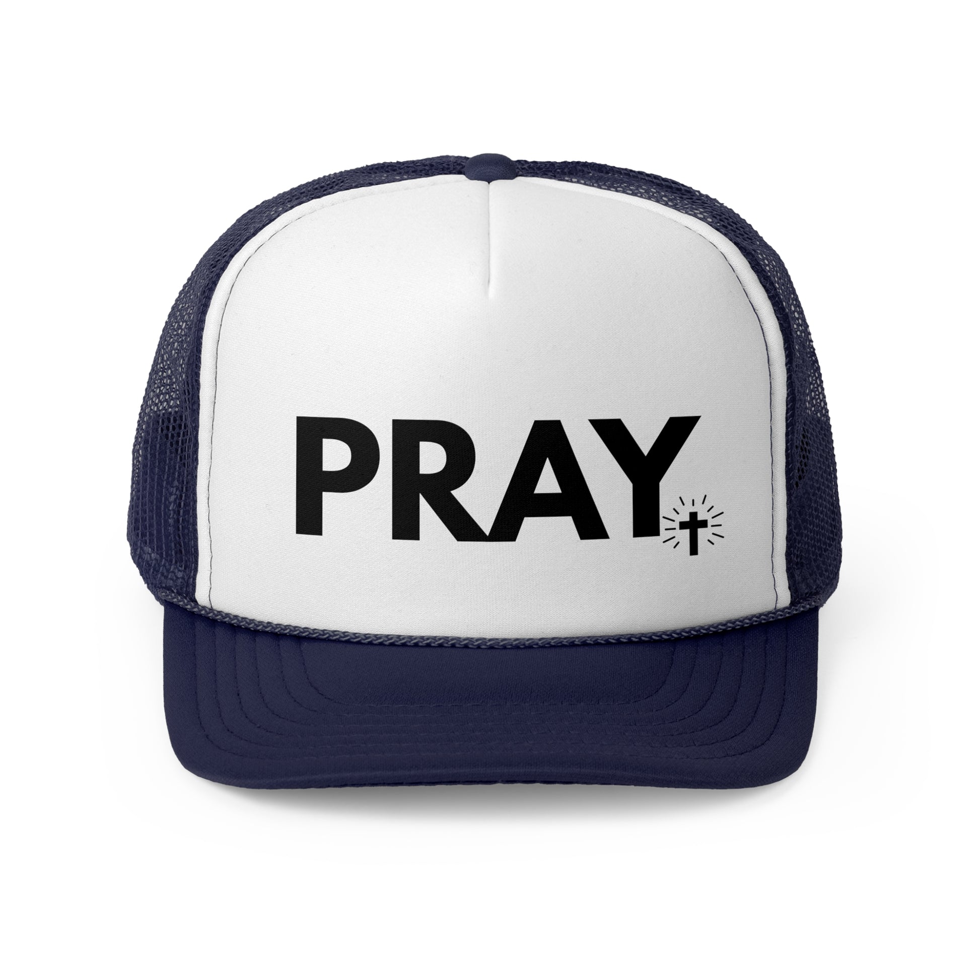 Stay stylish and show your faith with this trucker cap featuring a 'pray' design. Perfect for adding a touch of spirituality to your casual outfits. Ideal for adults looking for a stylish and comfortable accessory for everyday wear. Great for religious holidays, casual gatherings, and outdoor events.